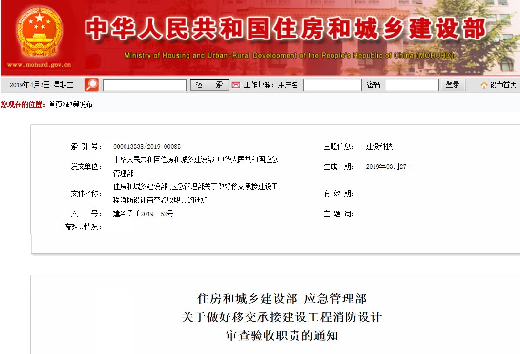 根據(jù)《中共中央辦公廳國務院辦公廳關于調(diào)整住房和城鄉(xiāng)建設部職責機構編制的通知》和《中央編辦關于建設工程消防設計審查驗收職責劃轉核增行政編制的通知》(中央編辦發(fā)〔2018〕169號)要求,住建部日前在官網(wǎng)發(fā)文,明確了建設工程消防設計審查驗收職責移交承接期,并規(guī)定了全部完成移交承接工作的最后時限。